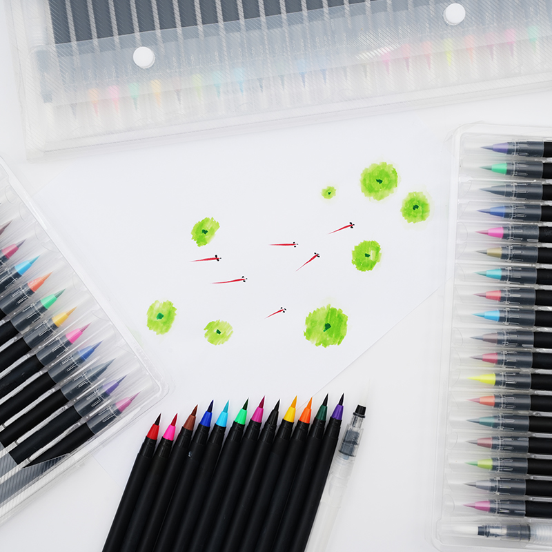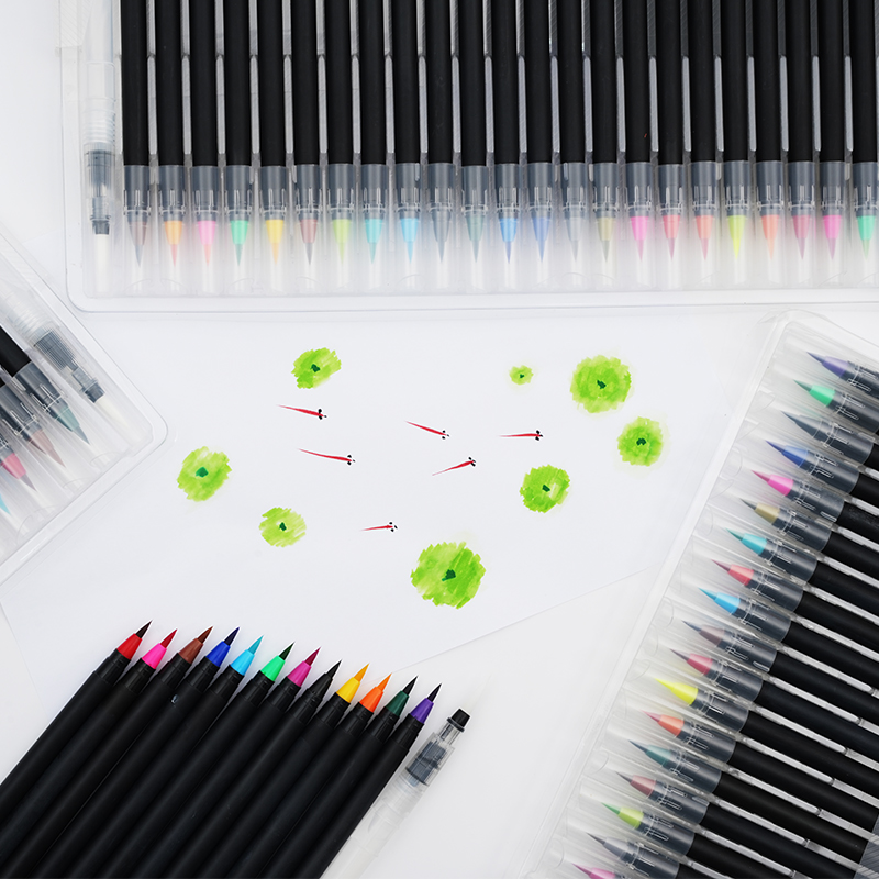 To expand creative possibilities, this set includes an additional refillable water brush pen. This tool enhances watercolor effects by allowing users to blend ink smoothly and create soft transitions between colors. Simply fill the water brush pen with water, and use it alongside the Calligraphy Soft Nib Color Brush Marker to achieve beautiful gradient effects and fluid designs. The combination of these two tools makes it easier to experiment with different artistic techniques, adding depth and texture to illustrations and lettering projects.