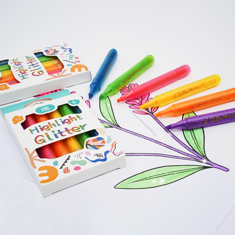 One of the key features of the Bright Colors Gold Glitter Body Glitter Color Marker is its ability to produce vivid hues while incorporating a sparkling gold glitter effect. The ink flows smoothly, creating an even layer of color with a shimmering touch. The gold glitter particles embedded in the ink enhance the overall brightness and appeal of your artwork. This marker is ideal for highlighting text, adding borders, or enhancing illustrations with a luminous glow.