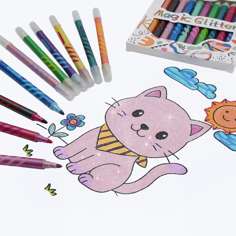 These markers can be used on multiple surfaces, including paper, cardstock, and decorative crafts. The color-changing and glitter effects add a distinctive touch to school projects, handmade cards, or artistic creations. Its versatility makes it a fun addition to any art kit or workspace.